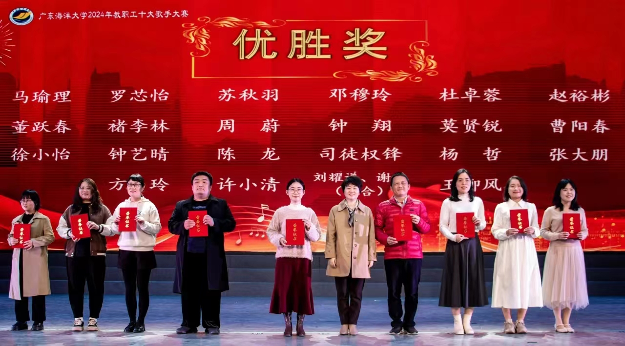 为进一步激发公司广大教职工的爱国爱校热情与工作激情,喜迎公司90周年华诞,12月26日,由公司教育工会主办的“喜迎海大90华诞·2024年教职工十大歌手大赛”总决赛在湖光校区中歌实验剧场举行。公司工会在本次活动中荣获“优秀组织奖”本次比赛得到了广大教职工的热烈响应,教职工们踊跃报名参加比赛。经过激烈角逐,公司工会会员孙一方老师荣获亚军,张大朋老师、褚李林老师获“优胜奖”