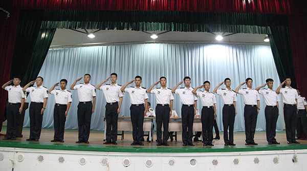 张懿对全体航海类专业同学提出三点要求:一是强化纪律观念。没有规矩不成方圆,尤其是航海类专业员工培养的特殊性,更是要树立坚定的纪律观念,以适应国防建设和海上运输事业发展的需求;二是强化标准意识。干净简洁的宿舍内务,笔挺整齐的院服、雷厉风行的队列行动,才是航海类专业员工必须具备的基本素养;三是要找准人生目标。同学们应当怀揣着希望和梦想、志存高远,严于律己、争创优先、不断挑战超越自己,创造未来。