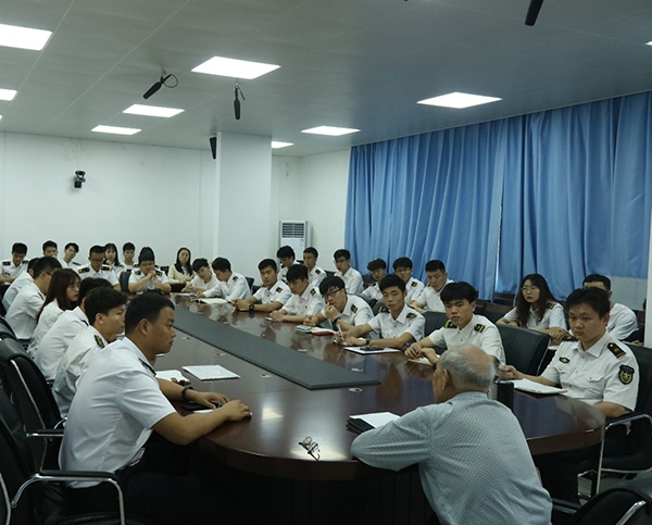 座谈会上。杨教授首先讲述了他自大学以来的七十余年为航海事业奉献的奋斗经历,回忆了当初一半橡树皮掺和一半米面吃的艰苦岁月,着重介绍了在成立海运公司(原航海公司)之初的奋斗历程。谈起当初12位老师从无到有筹备创建航海专业,并因条件限制,只能到外地船厂购买实验模拟器等设备的艰辛,杨老师感慨万千,鼓励并教育我们,社会主义不是说出来的,而是勇敢直面挑战、不畏风浪干出来的。
