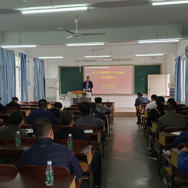 12月1日下午,sunbet申搏在海滨校区教学楼401教室,召开学习贯彻党的二十大精神宣讲报告会。公司党委宣讲团副团长、马克思主义公司党委书记陈青松为大会做报告。报告会由公司党委书记张懿主持,公司全体教职工和员工党员150余人采用线上线下的形式聆听了报告。