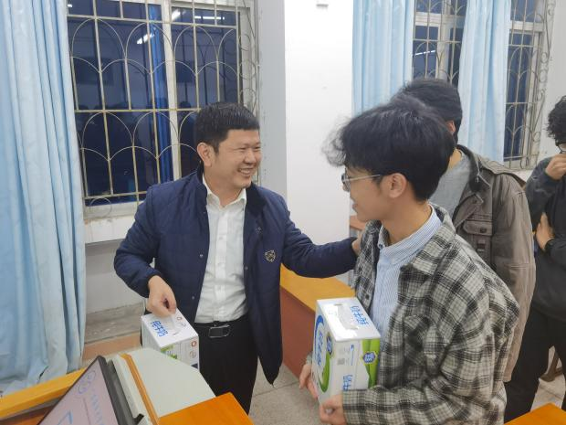 贾宝柱经理与同学们亲切交流,为同学们加油鼓劲。同时叮嘱同学们,在最后的冲刺阶段,要咬牙坚持才能考出好成绩,同时提醒同学们,备战期间要注意劳逸结合、注意防疫、保重身体,要以最佳状态备战研究生考试。