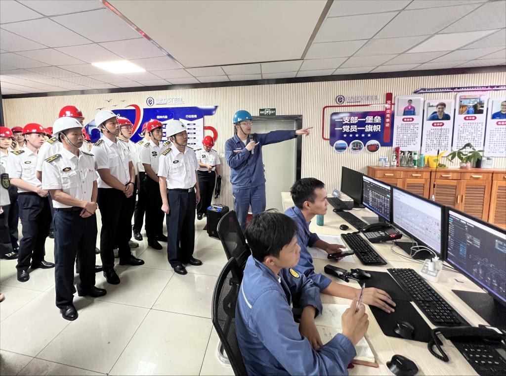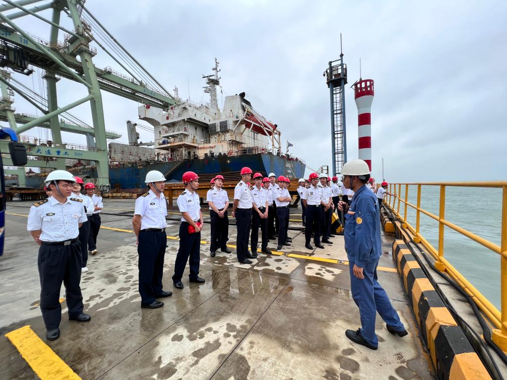 首先,王钰琛员工带领同学们参观了宝钢主原料码头、全天候码头、成品码头以及成品码头集控室,实地了解了港口物流的前沿技术。随后,前往湛江钢铁党员活动中心开展座谈交流。