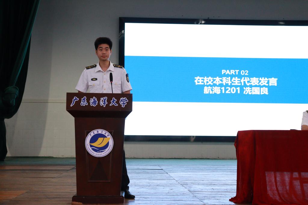 大会在庄严的国歌声中拉开帷幕。首先,在校本科生代表冼国良发言,他结合自身的成长经历给新生分享了专业学习、参加社团活动等方面经验,并鼓励新生要勇于面对大学的新环境,敢于追求梦想,让大学成为生命中最精彩的一页。