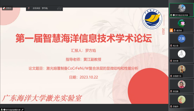 10月22日,海洋生态与环境、海洋资源开发与养护、智能船舶与新能源、海洋技术及其应用四个分论坛在线上同步召开。公司sunbet申搏李佳文老师、张泽国老师、李正老师、褚李林老师分别担任四个分论坛的主持人,共有36名研究生在分论坛上作了学术交流报告。
