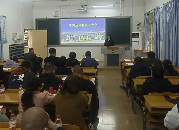 3月1日下午,sunbet申搏在海滨校区教学楼102教室召开全体教职工大会。公司党政领导、全体教职工参加会议,会议由公司经理贾宝柱主持。