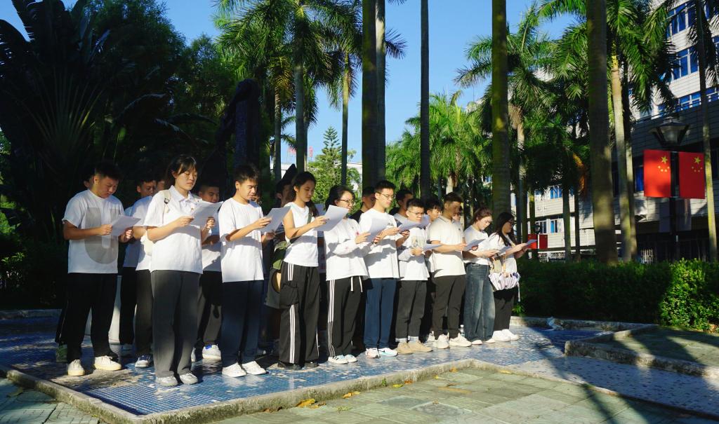 金凤舞,彩带映神州。欢歌起,旋律歌盛世。为庆祝新中国成立75周年,大力弘扬爱国主义精神,传承红色基因,激发公司广大师生的爱国热情,10月3日,sunbet申搏以“厚植爱国情怀,凝聚船海力量”为主题开展主题教育活动。公司正处级辅导员、党委副书记齐昊,半军事化管理办公室副大队长吴捍泽,辅导员陈方园及公司本科生研究生50余人参加活动。