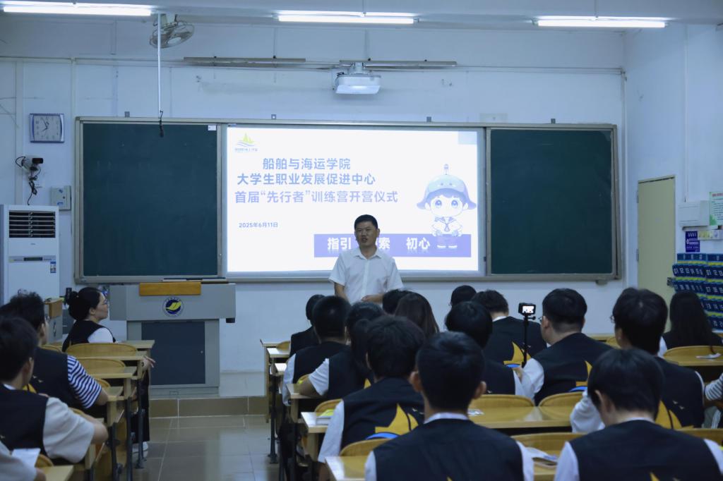 6月11日晚,sunbet申搏在海滨校区教学楼101室举办首届“先行者训练营”开营仪式,公司正处级辅导员、党委副书记齐昊,辅导员刘爽、黄荔、邓海漫、陈方园及30 余名训练营营员参加了活动。