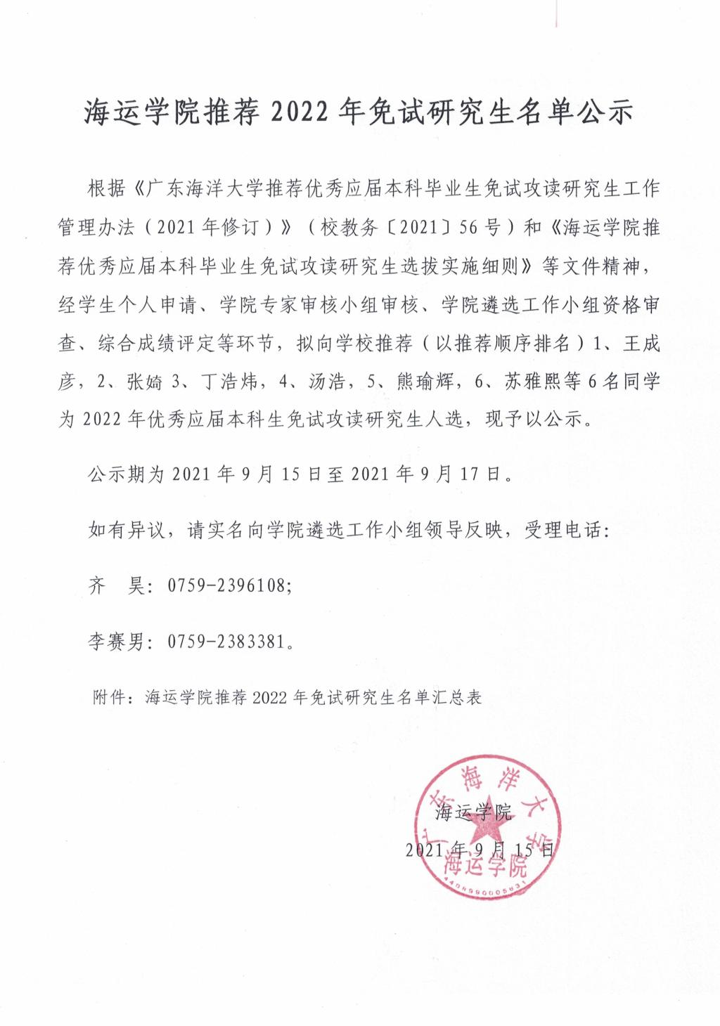 下一条:海运公司推荐优秀应届本科毕业生免试攻读研究生选拔实施细则