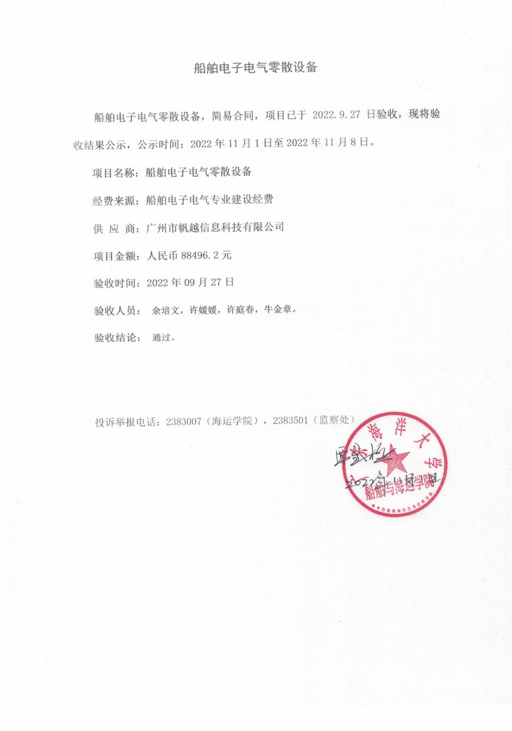 船舶电子电气零散设备验收公示