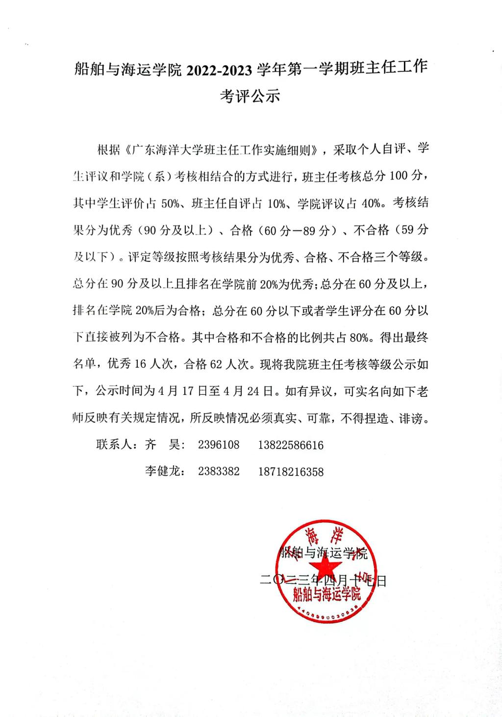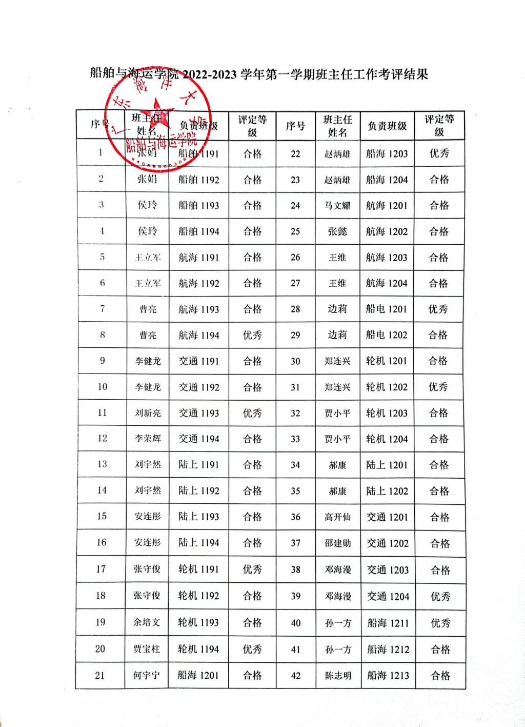 sunbet申搏2022-2023学年第一学期班主任工作考评公示