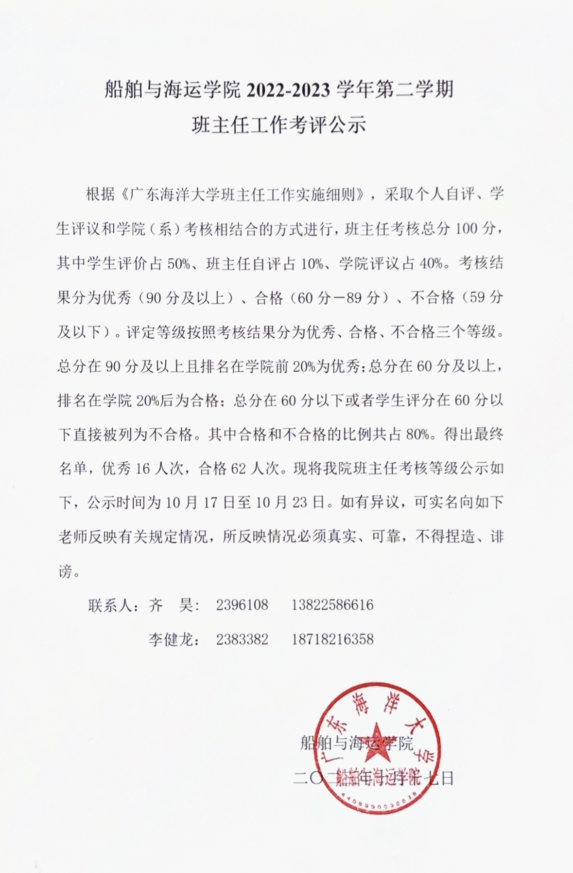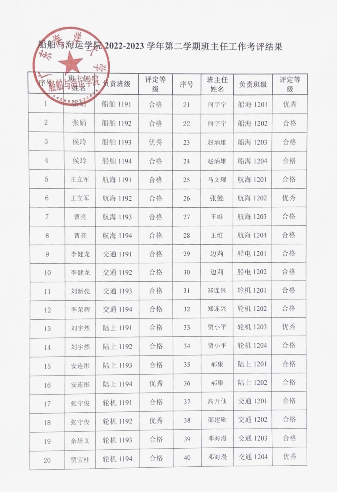 sunbet申搏2022-2023学年第二学期班主任工作考评公示