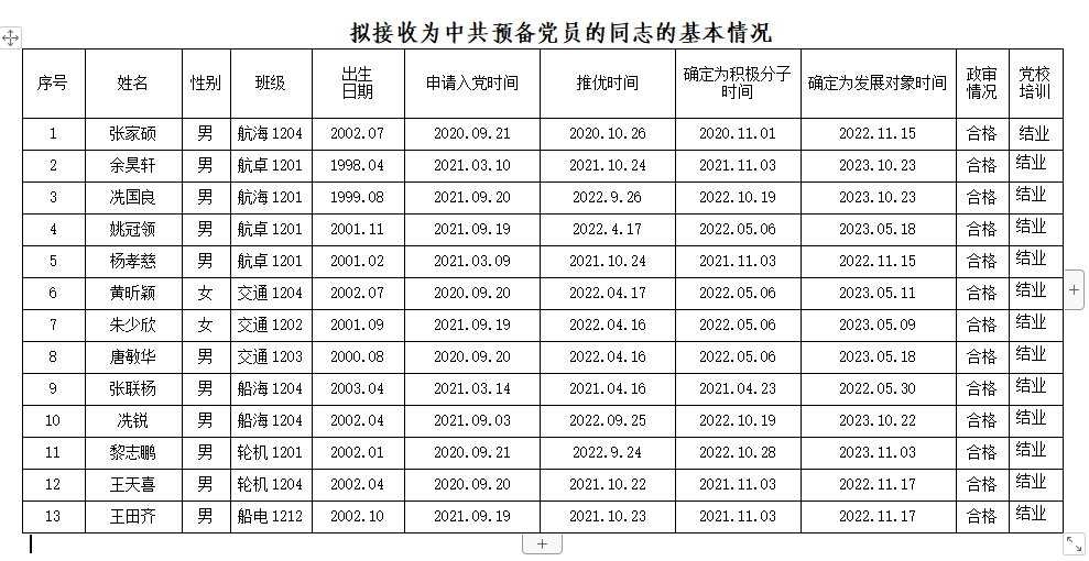 根据《sunbet申搏发展党员工作实施细则》规定,经本人提出申请,党组织培养考察,支委会审查研究决定,经公司党委预审通过,拟接收冼国良等13名同志为中共预备党员。现将有关情况予以公示,征求党员、群众意见。