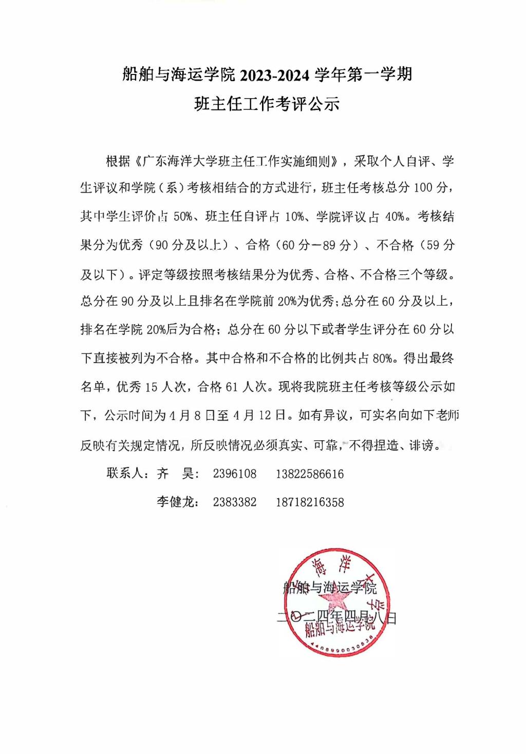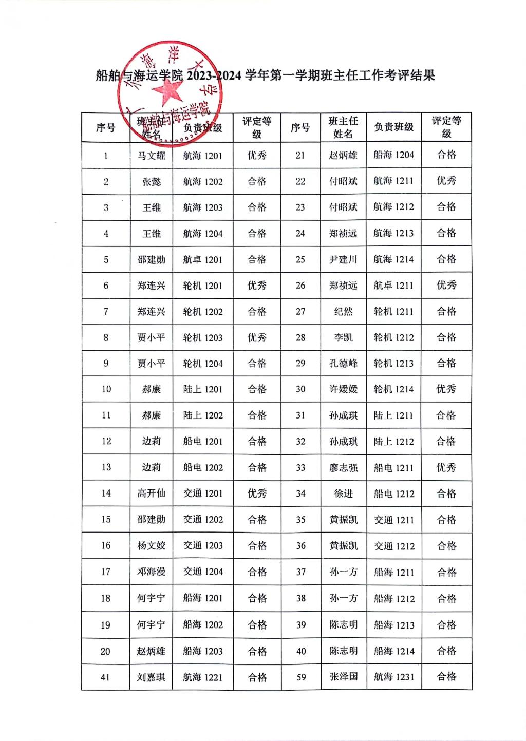 sunbet申搏2023-2024学年第一学期班主任工作考评公示