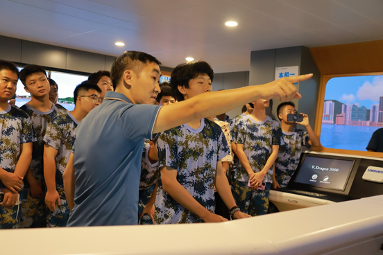 参观的第一站是航海模拟器。在这里,志愿者队伍热情地向新生们介绍了船舶甲板平台上的各种仪器设备,并邀请他们亲自动手操作实验模拟器,新生们仿佛置身于真实的海洋环境中,乘风破浪,深刻的感受到了航海的魅力。他们的脸上洋溢着兴奋与喜悦,纷纷表示这种体验既新鲜又刺激。