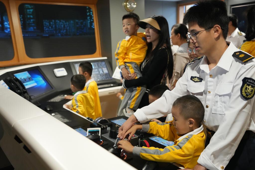 最令人期待的环节莫过于登上航海驾驶模拟器了。当孩子们踏上操作台,眼前的巨大屏幕瞬间呈现出了栩栩如生的海景。志愿者们在一旁给予适时的指导,传授航海知识与技巧,耐心解答孩子们的疑惑。这种真实感十足的体验让孩子们仿佛置身于浩瀚的海洋中,感受到了航海的魅力和挑战。